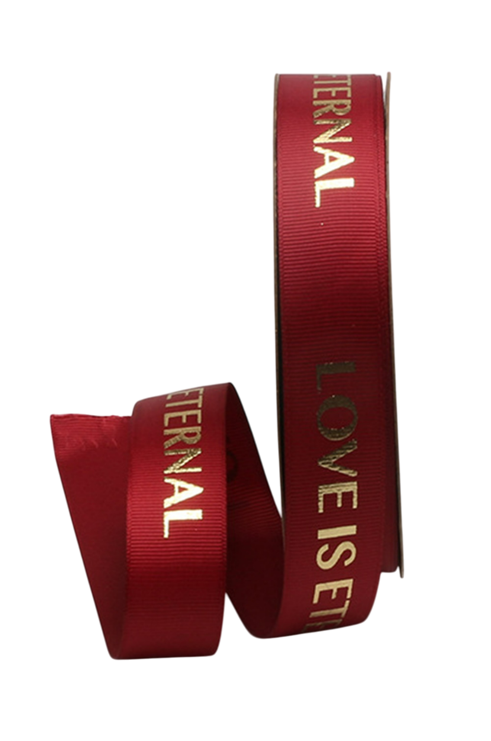 Panglica ripsata cu imprimare embosata, mesaj auriu "Love is Eternal".