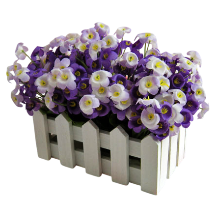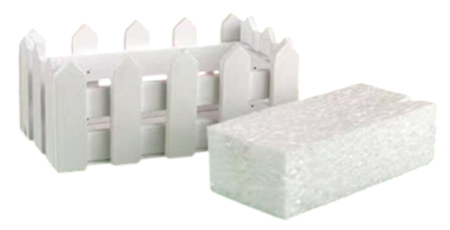 Ghiveci alb din lemn, tip "Gard", pentru aranjamente florale din flori naturale sau artificiale. Produsul are o baza din polistiren pentru fixarea florilor artificiale. Pentru aranjamente din flori naturale puteti folosi burete umed invelit intr-o punga din plastic pentru a proteja baza si laturile ghiveciului de umiditate.