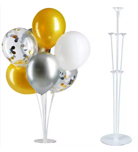 Suport/Stand din plastic transparent pentru 7 baloane ce poate fi expus pe masa/podea. Baloanele din fotografia de prezentare nu sunt incluse in pret.
