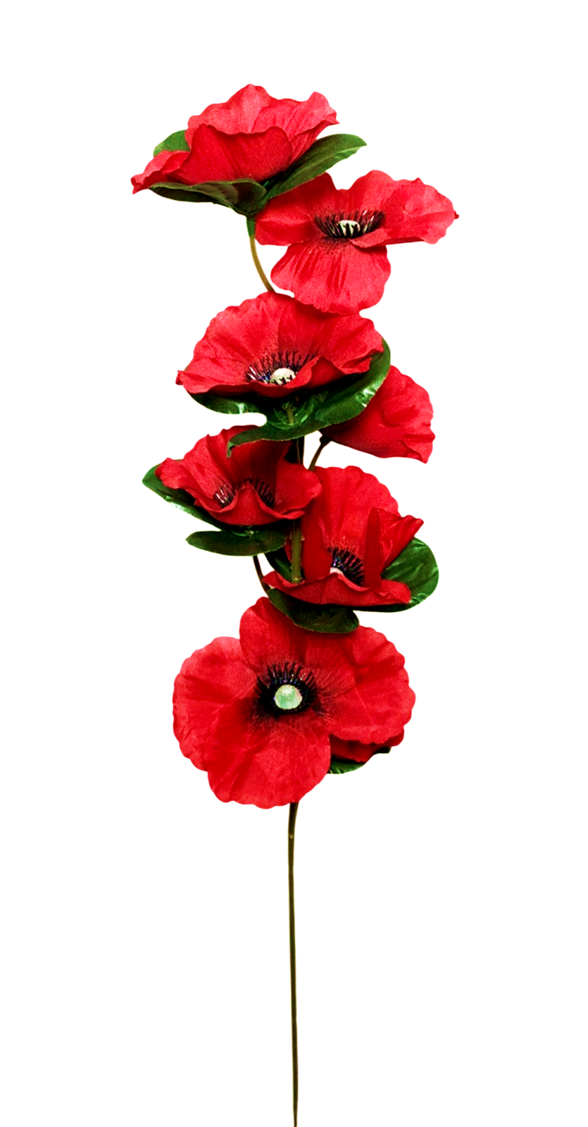 Crenguta cu Flori de Mac din matase artificiala, pentru aranjamente florale/decoratiuni. Tulpina este din plastic cu insertie metalica, modelabila.
