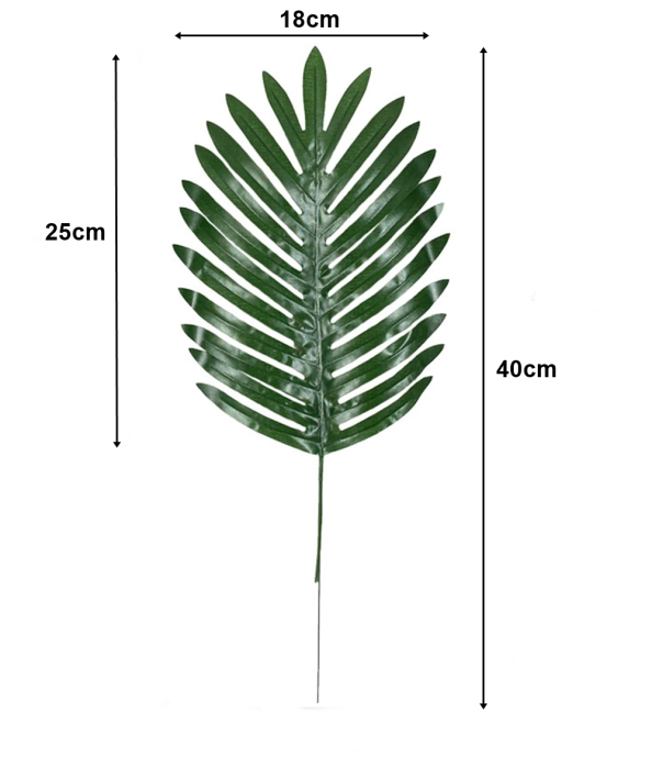 Set 12 frunze de culoare verde inchis, din matase artificiala - Palmier Areca. Toate nervurile frunzei precum si codita au insertie metalica ce permite curbarea/modelarea dupa preferinta.