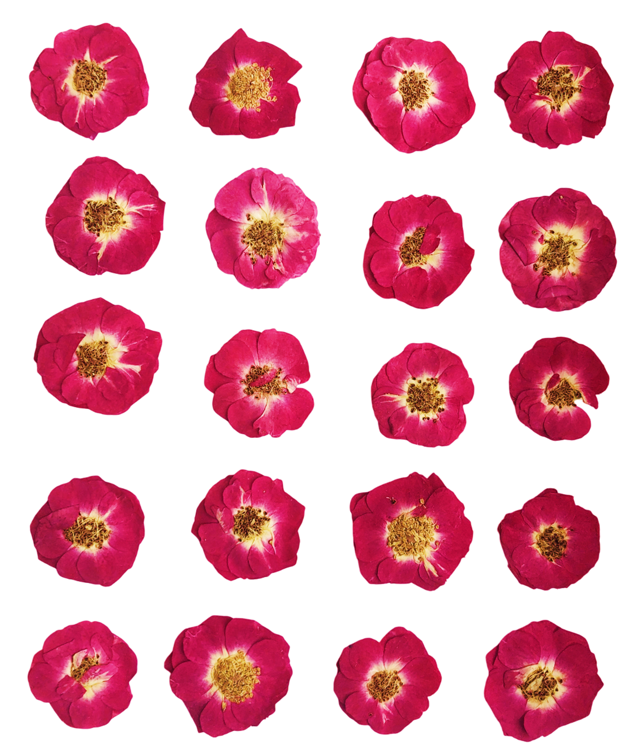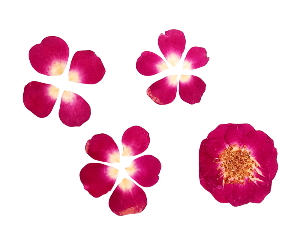 Blister cu 20 flori uscate si presate, 100% naturale, de marimi variabile - Trandafir