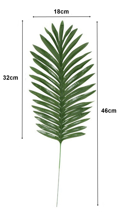Set 12 frunze de culoare verde inchis, din matase artificiala - Palmier Areca. Toate nervurile frunzei precum si codita au insertie metalica ce permite curbarea/modelarea dupa preferinta.