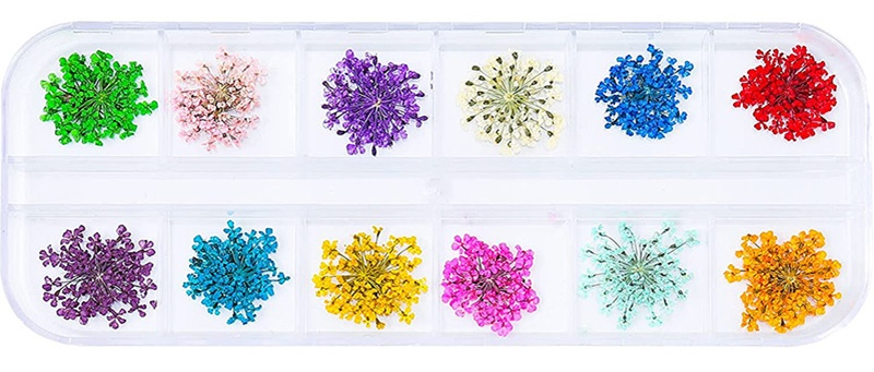 Sortiment de flori miniaturale, multicolore, uscate si presate, 100% naturale, de marimi variabile, ideale pentru a decora lucrarile din rasina, Nail Art precum si alte proiecte. Pretul se refera la o cutie cu aprox. 12buc.