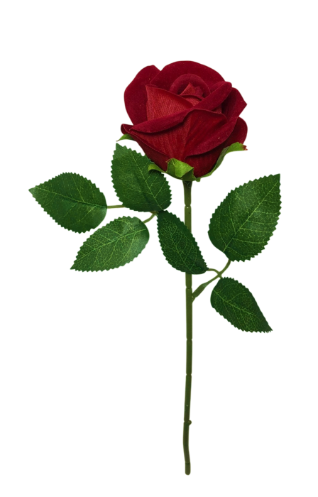 Floare din catifea - Trandafir, pentru aranjamente florale/decoratiuni. Tulpina este din plastic cu insertie metalica, modelabila.